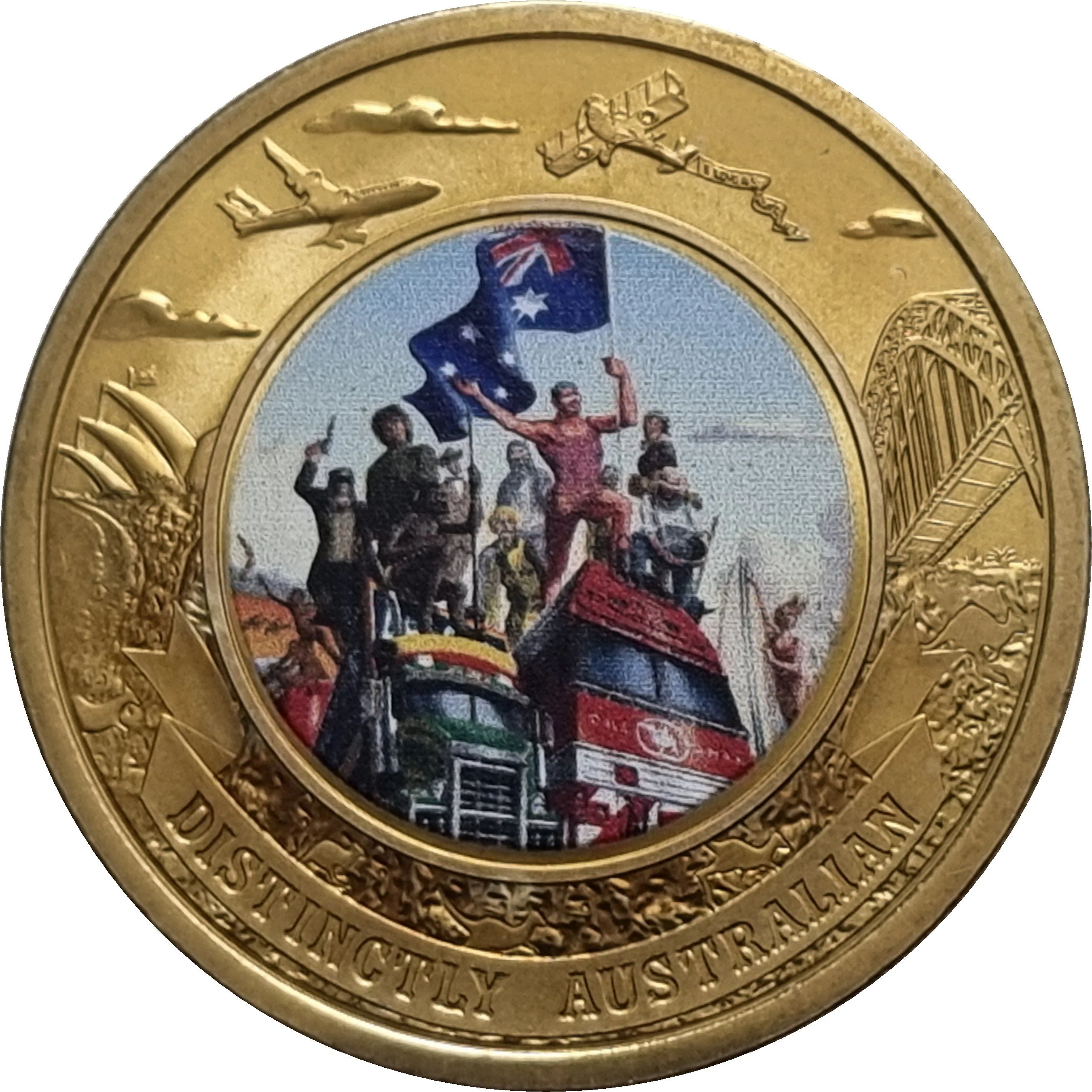 Inner circle pad-printed with Australian icons under the national flag; outer ring features additional die-pressed icons.