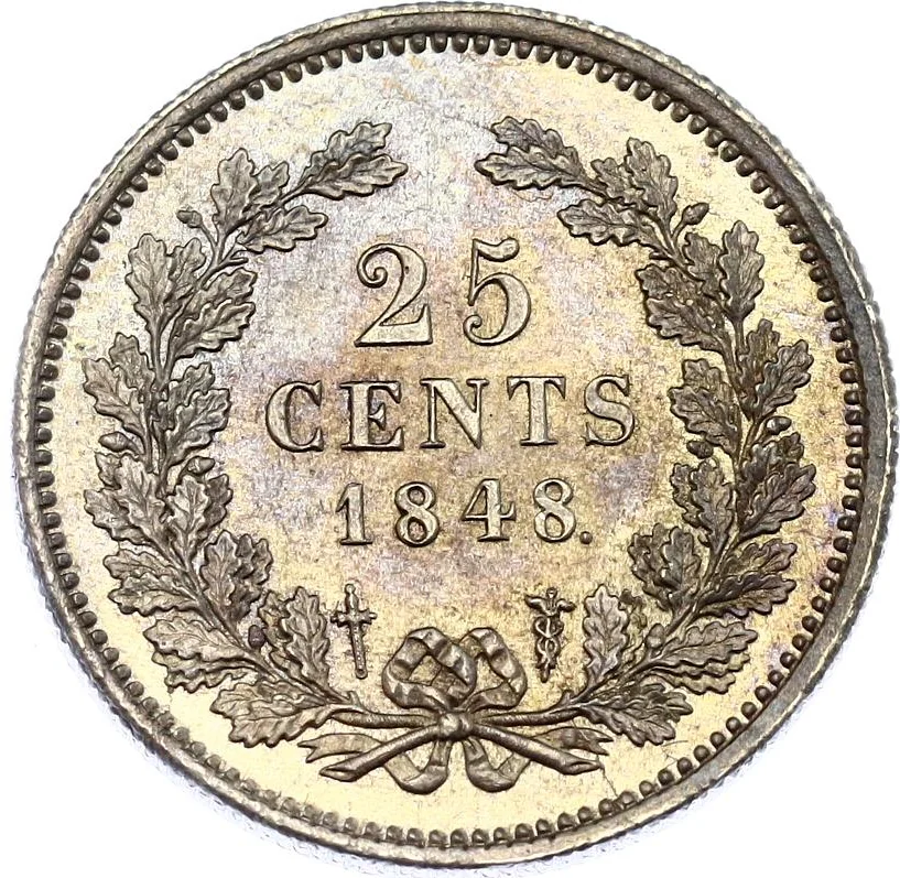 In 1848, the Netherlands operated under a bimetallic monetary system, formally established by the Coin Act of 1816. This law fixed the value of the silver guilder (also called the florin) and the gold ten-guilder coin at a specific ratio (1:15.873). However, this system was under significant strain due to global market fluctuations in the value of gold and silver. The discovery of new gold sources was beginning to destabilize the fixed ratio, making it increasingly difficult for the Dutch central bank, De Nederlandsche Bank (DNB), to maintain both coins in circulation, a problem common across Europe.