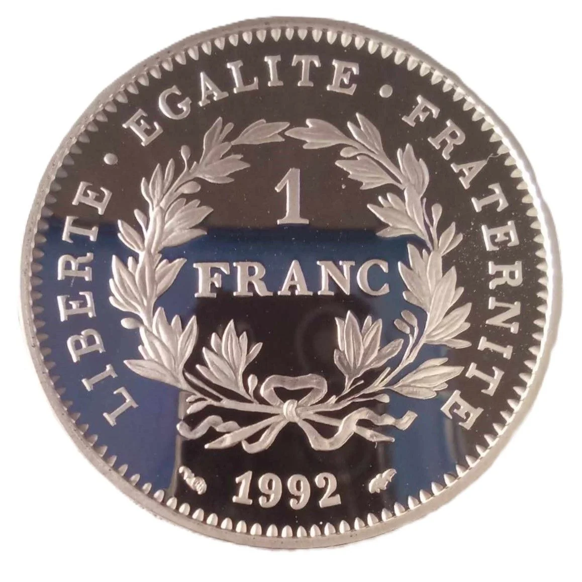 The face value, encircled by laurel branches, is surrounded by the inscription "LIBERTE - EGALITE - FRATERNITE".