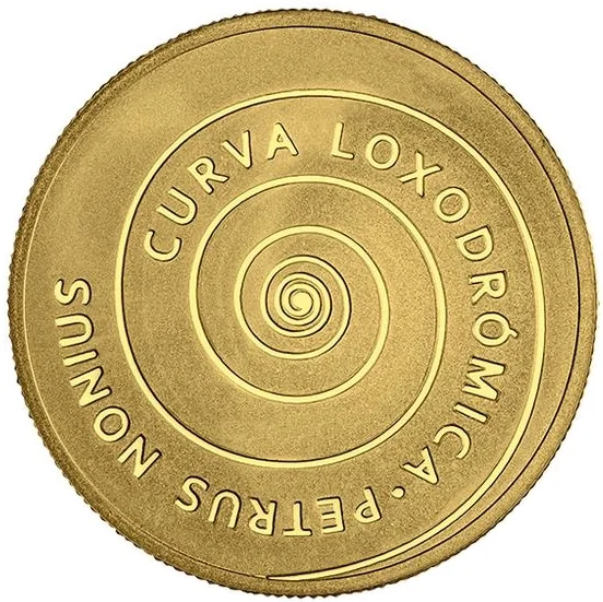 The motif features the loxodromic curve, discovered by Portuguese mathematician Pedro Nunes in 1537, which revolutionized global navigation and cartography.