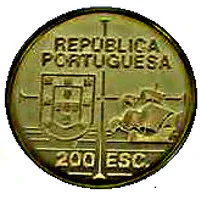 Portuguese shield with a 16th-century sailing ship before the Cross of Christ. Denomination below.