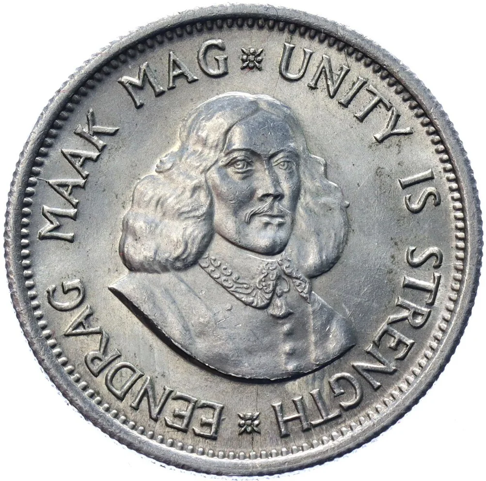 Jan van Riebeeck bust facing right, with bilingual inscription.