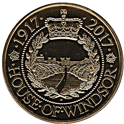 Right-facing bust of Queen Elizabeth II in the George IV State Diadem and Victorian Coronation Necklace, surrounded by legend and date, with denomination below.