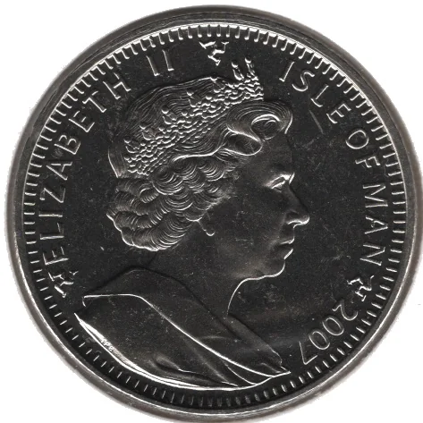 In 2007, the Isle of Man's currency situation was defined by its unique political status as a British Crown Dependency. While not part of the United Kingdom, the Island's long-standing monetary policy was to align its currency with that of its largest trading partner. Consequently, the official currency was the Manx pound, which was issued by the Isle of Man Government and maintained a fixed parity at a 1:1 exchange rate with the pound sterling. Sterling notes and coins also circulated freely and were accepted as legal tender alongside distinct Manx-issued notes and coins, which featured local symbols and imagery.
