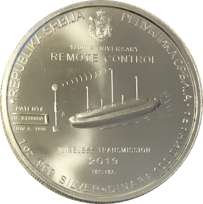 Description: Boat with antenna. Crest above; weight, purity, and year below.