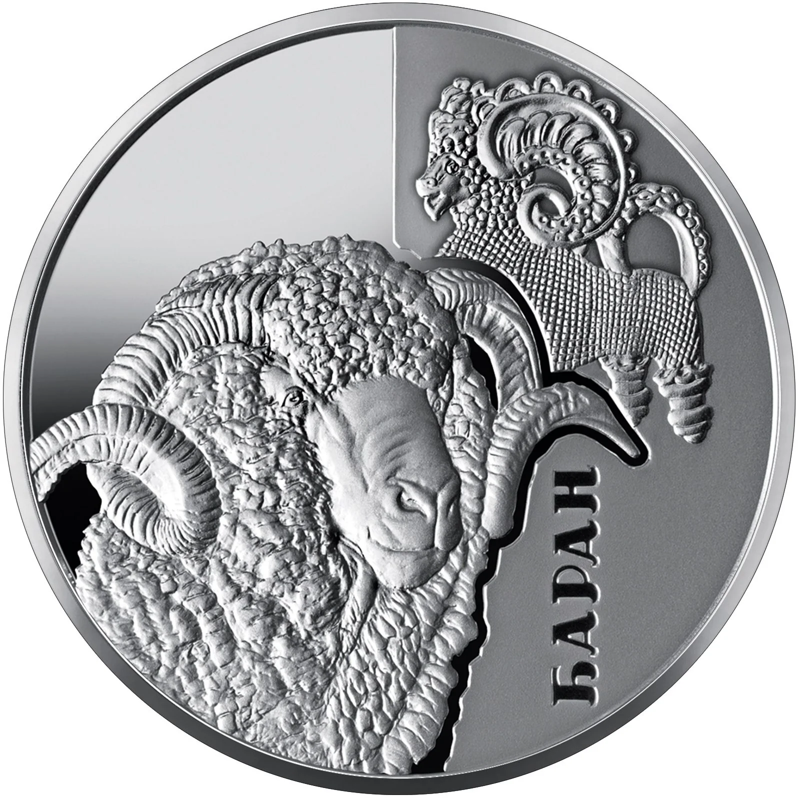 A ram's head is shown, with the vertical inscription "Баран" (Ram) and an image of an Opshnya ceramic sheep (Poltava region) beside it.