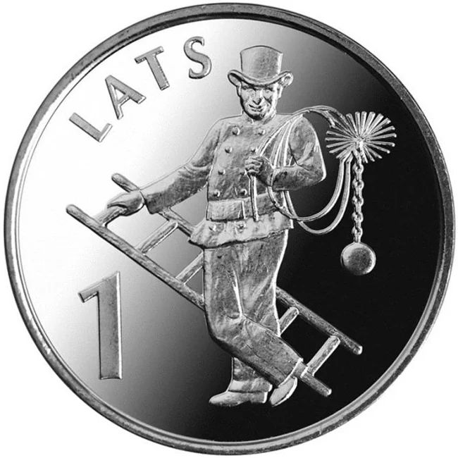 A central chimney-sweep is flanked by the semicircular inscription LATS on the upper left and the numeral 1 on the lower left.