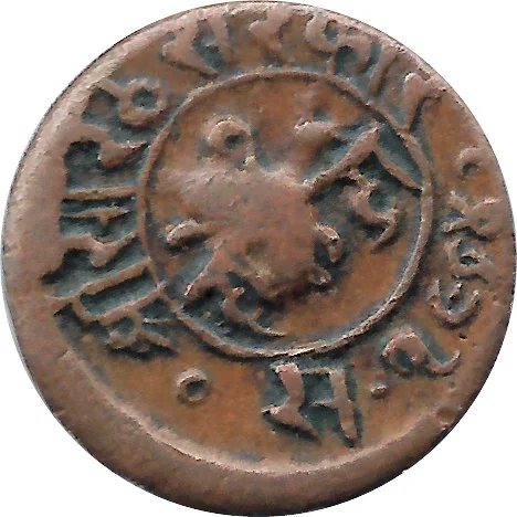 Devanagari "Shri Sorath Sarkaar." Date flanked by annulets.