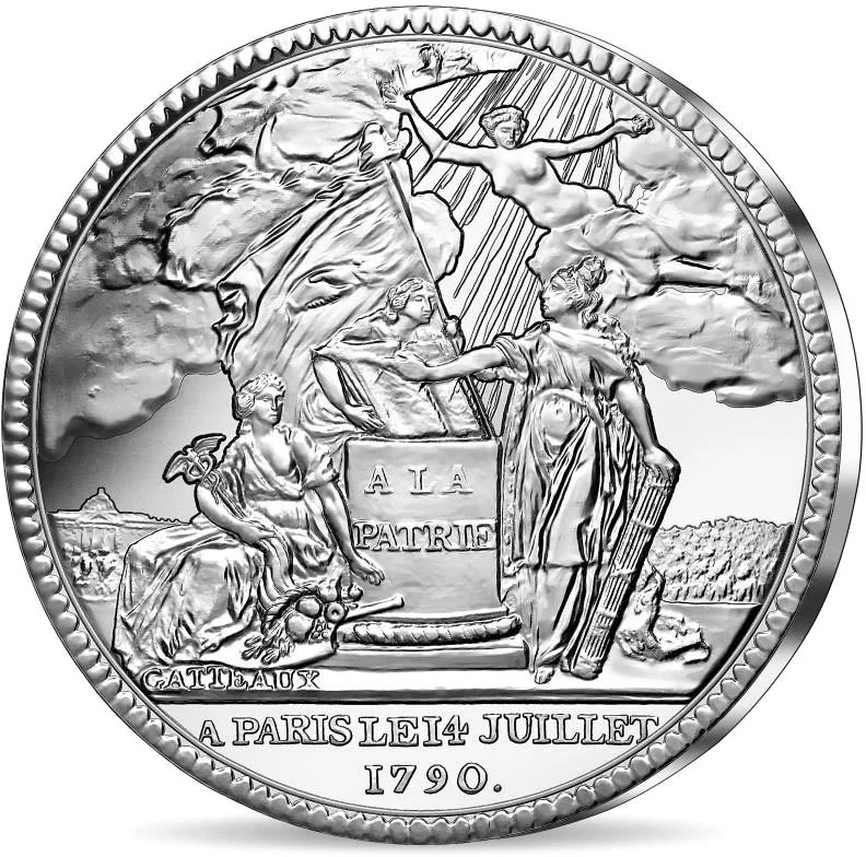 The coin's reverse depicts a medal commemorating the 1790 Festival of the Federation.
