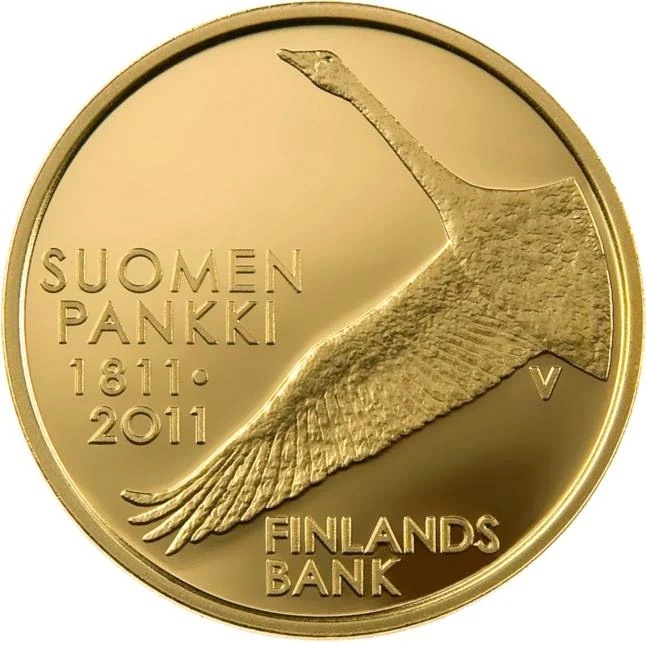 A swan's wing with the year, face value, and "SUOMI FINLAND."