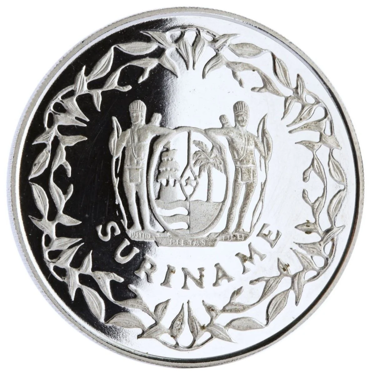 Coat of arms flanked by two natives, encircled by a wreath with a legend below.