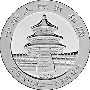 A mother panda and her cub, with "1oz Ag .999," "100th Anniversary of Bank of Communications," and the face value.