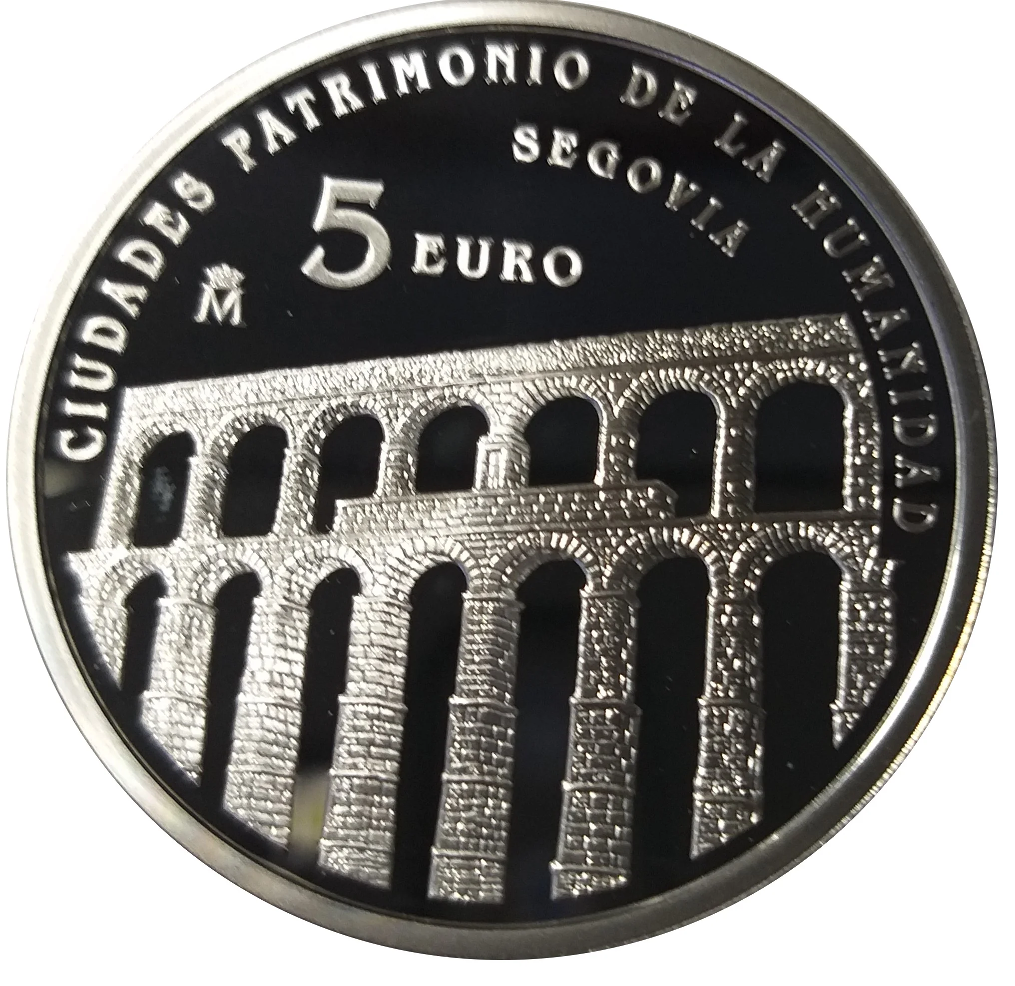 The reverse depicts Segovia's Roman aqueduct.