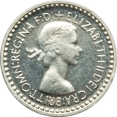 Young Queen Elizabeth II bust right, "BRITT:OMN" legend.
