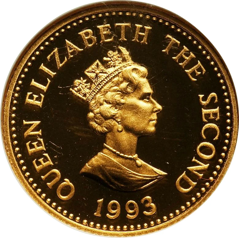 Queen Elizabeth II right-facing bust in George IV State Diadem, with legend and date.