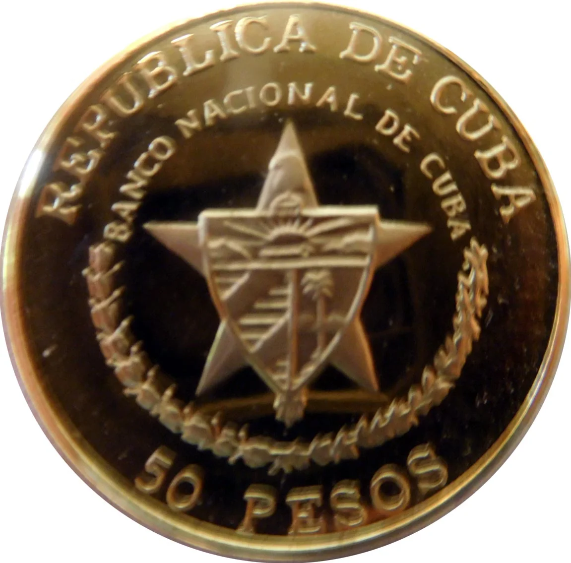Cuban coat of arms, country name above, value below.