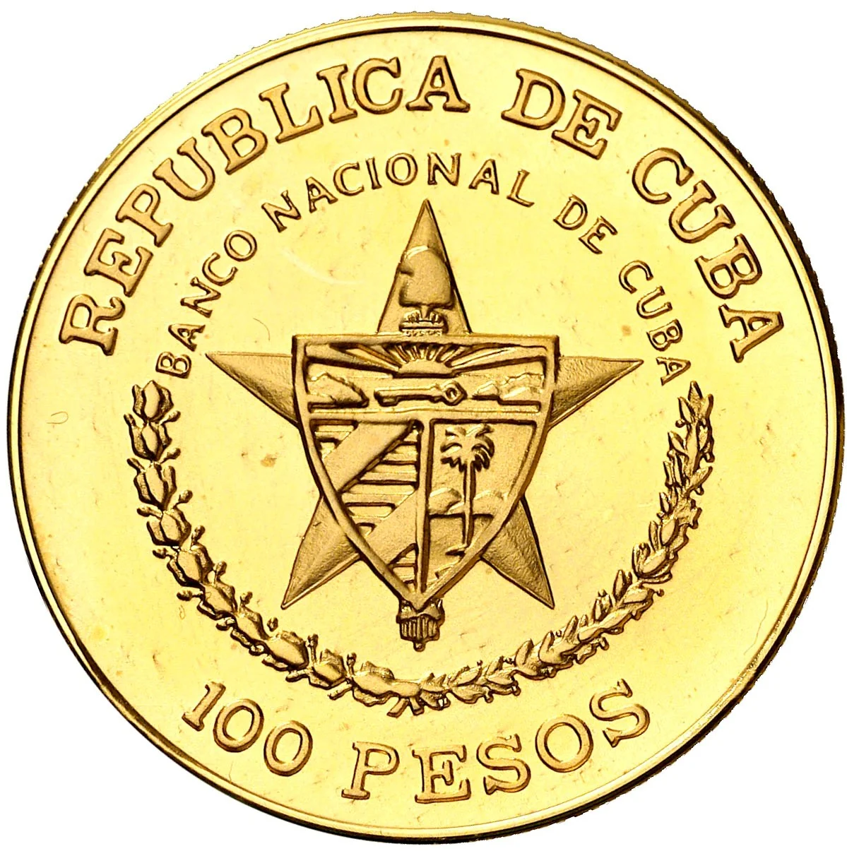 Cuban coat of arms, country name above, value below.