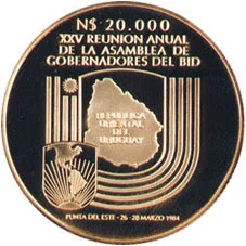 20000 Nuevos Pesos (Gold Coinage and Inter-American Development Bank Governors Meeting) – Uruguay