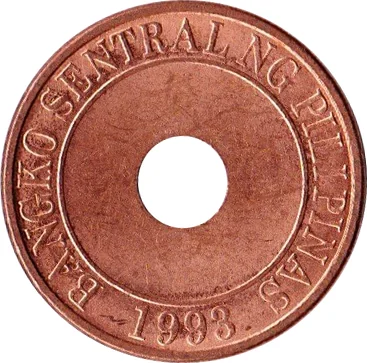 Denomination legend around rim, below center hole, with 1993 (Central Bank's founding) at bottom.