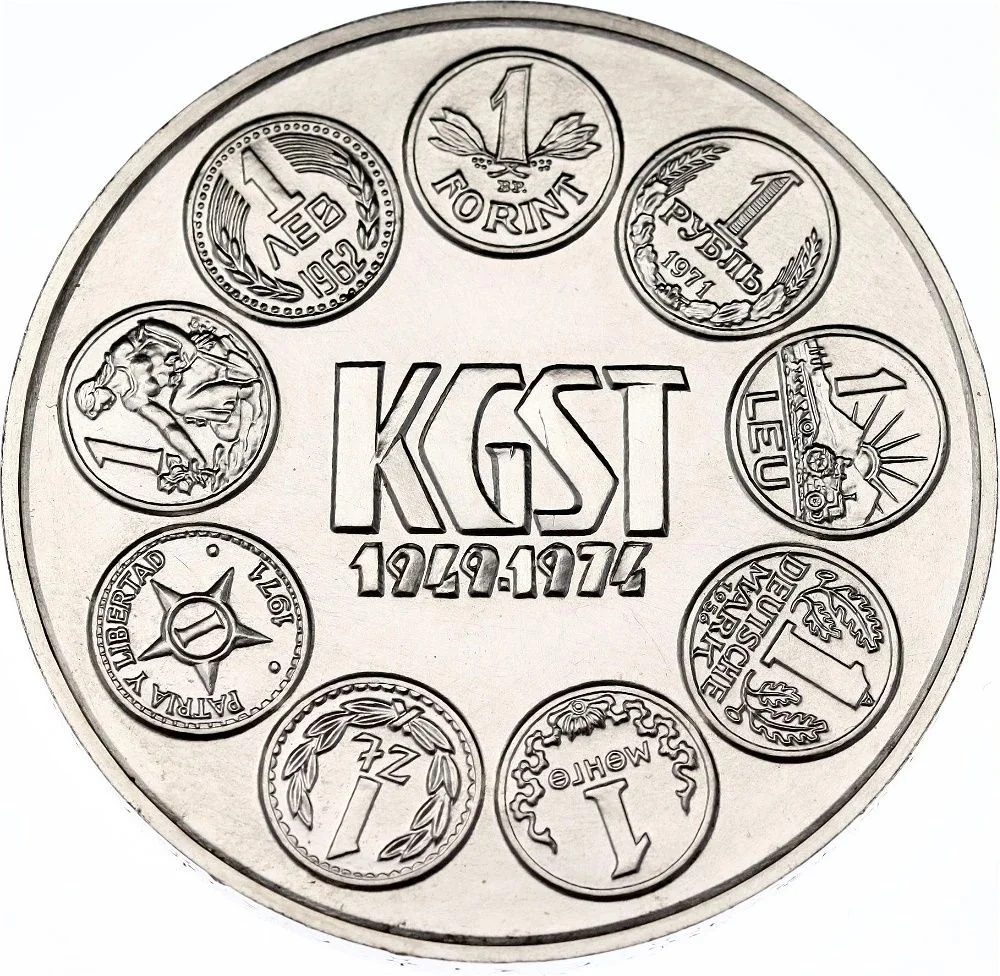 Coins from all 9 COMECON nations, commemorating the 25th anniversary of the Council for Mutual Economic Assistance (COMECON/KGST).