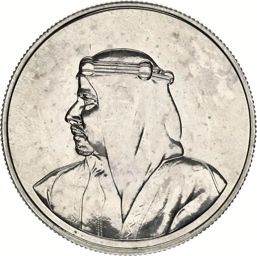 Description: Crowned coat of arms inside an octagon, surrounded by the town name, state, dates, and denomination in Arabic and English.