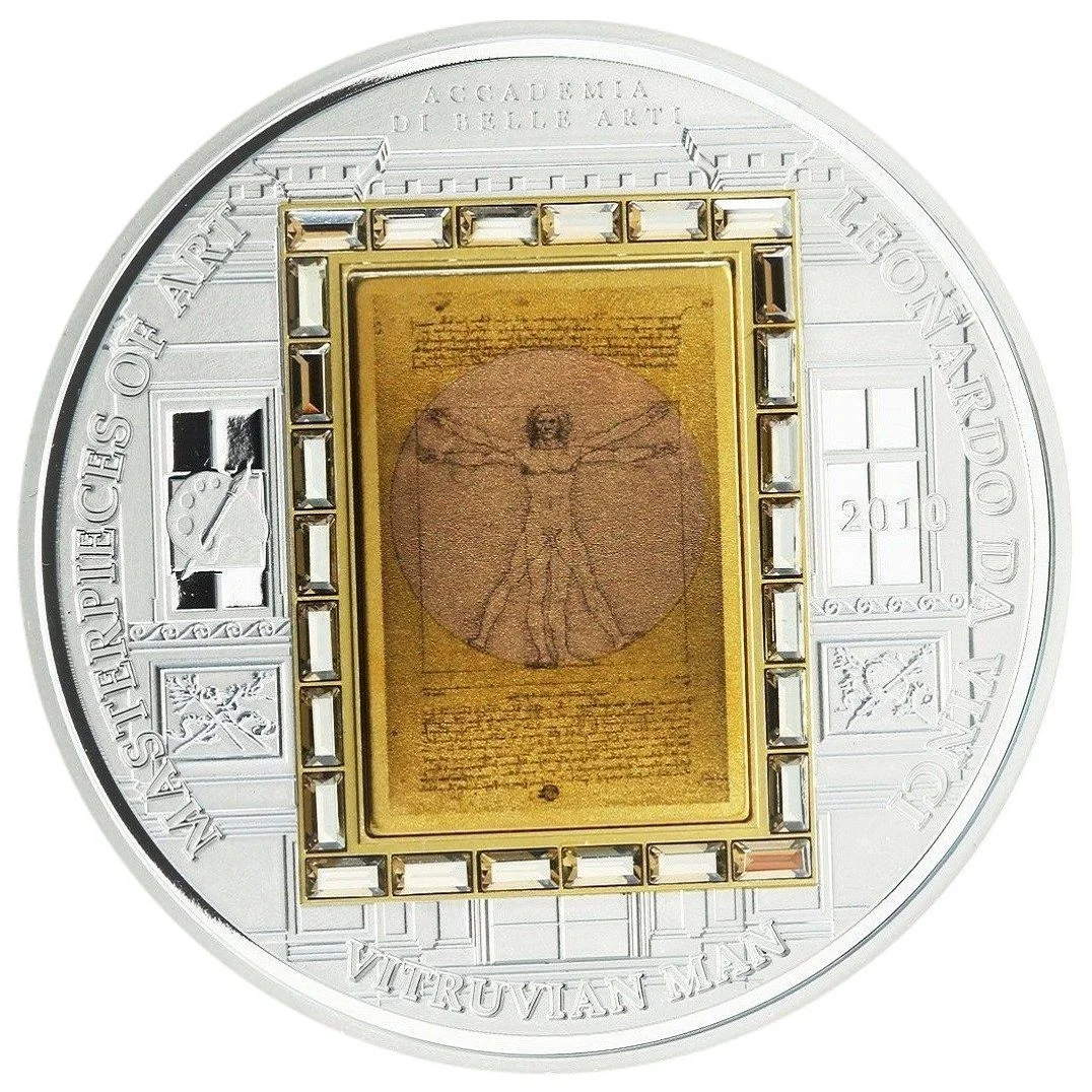 Vetruvian Man in gold inlay, framed by 26 stones.