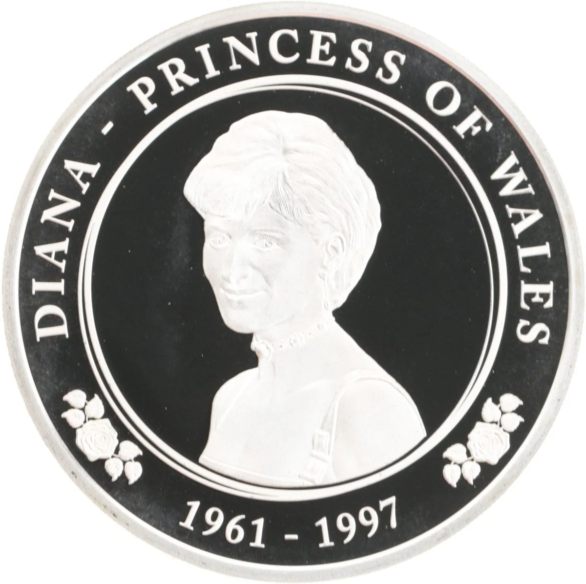 Princess Diana, "England's Rose," portrayed with her life dates and engraved roses.