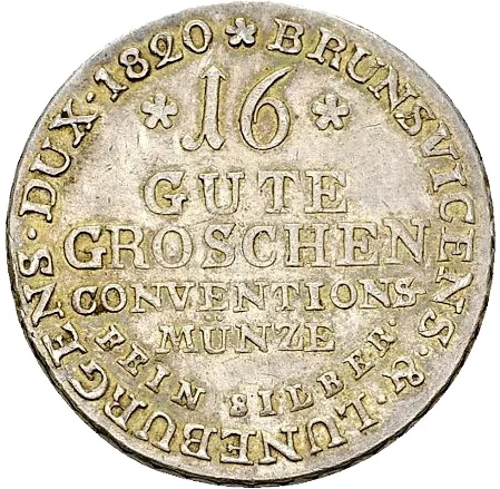 16 Gute Groschen = ⅔ Hanoverian thaler = ½ Conventionsthaler = 1⁄20 Cologne Mark