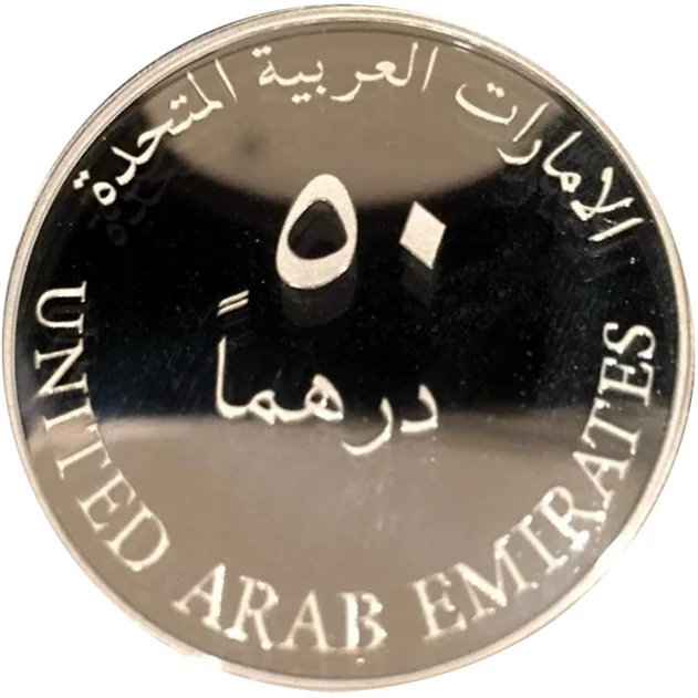 "50 Dirhams" in Arabic and English, with "United Arab Emirates" in both scripts.