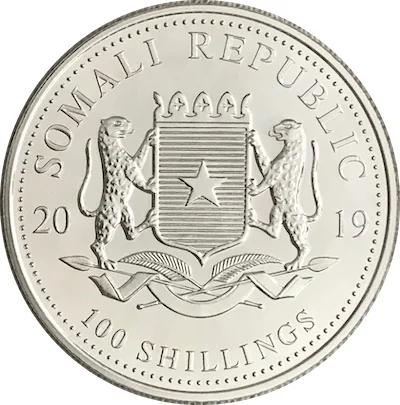Somalia coat of arms between date and value.