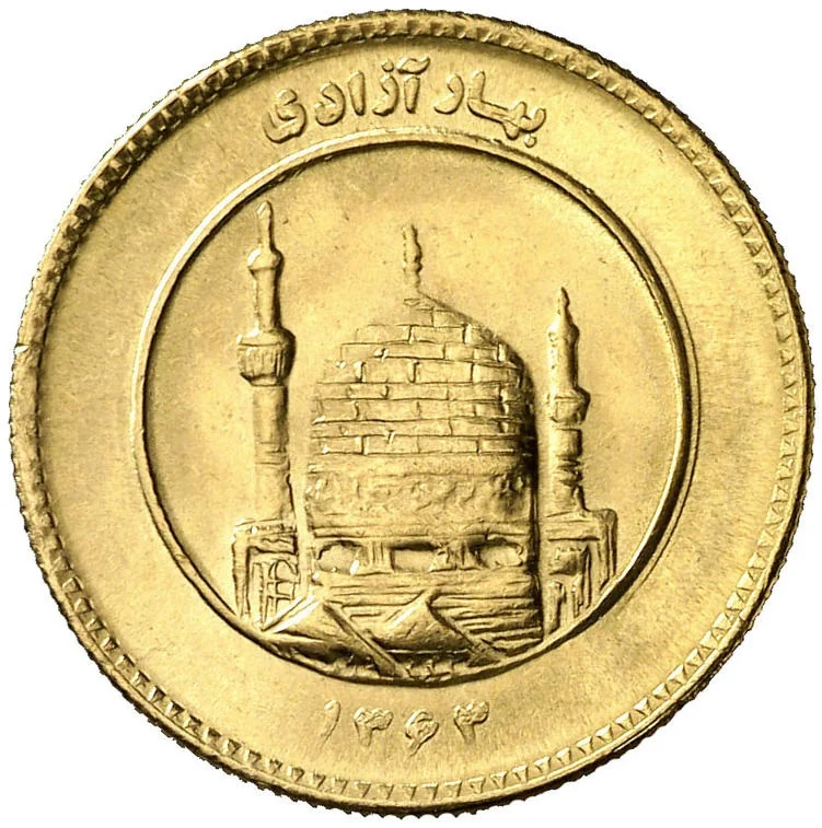 "Ali" in calligraphy, repeated six times in a hexagon. Legend below.