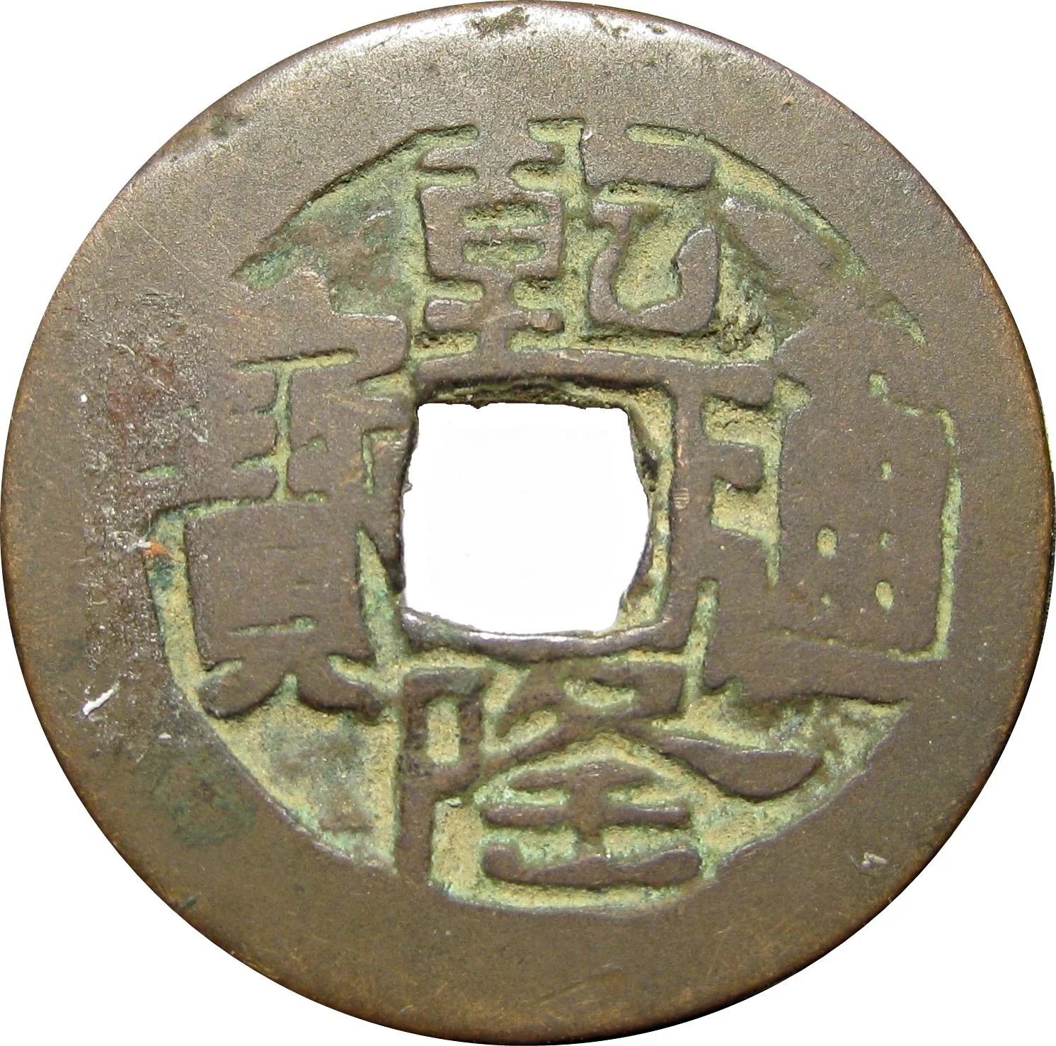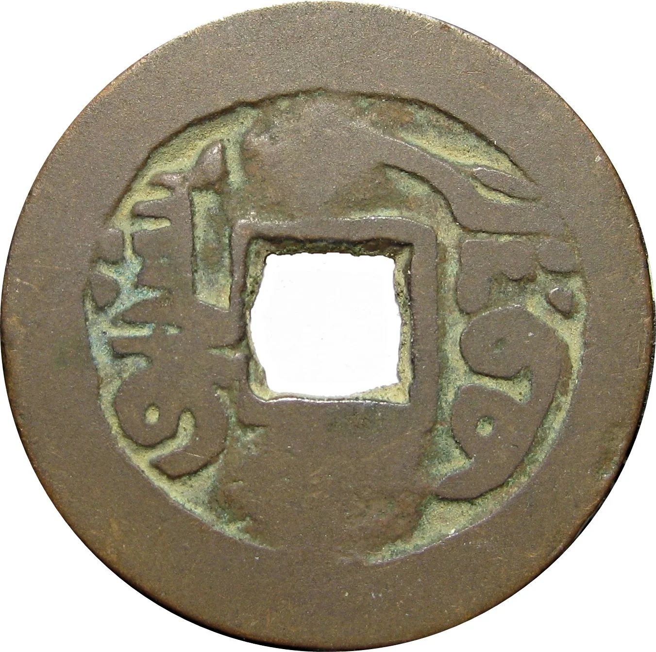 baoqian). These standardized copper-alloy cash coins with a square hole, minted in Chinese mints, were intended to facilitate taxation and integrate the local economy into the imperial system. The Qing authorities established official exchange rates between copper coins and silver