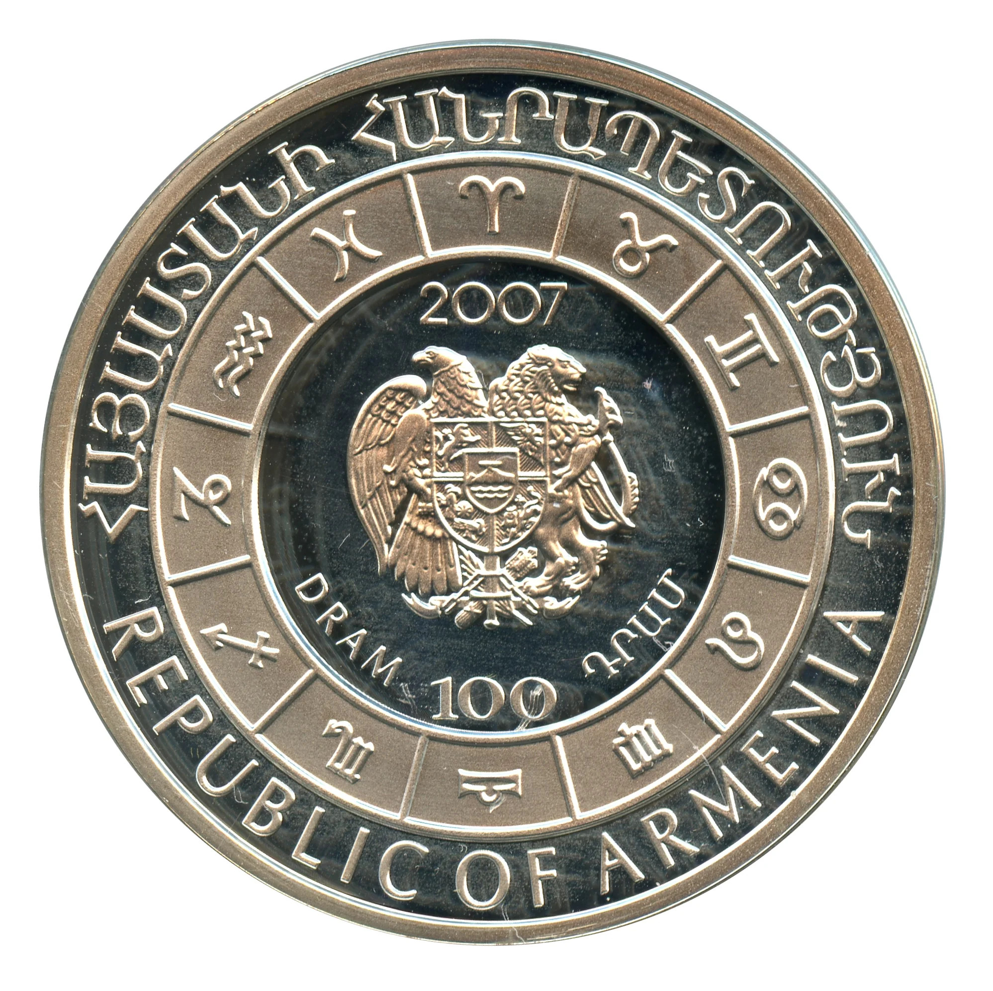 National coat of arms with date above, denomination and Zodiac symbols below.