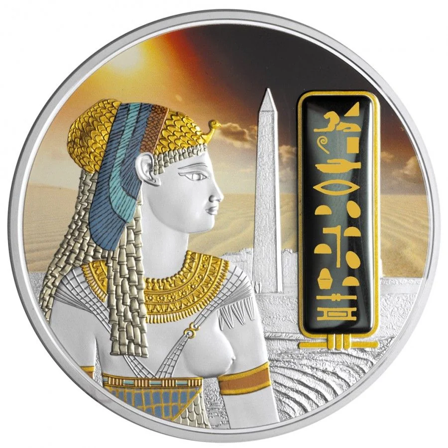 Cleopatra VII facing right, jewelry beside her cartouche.