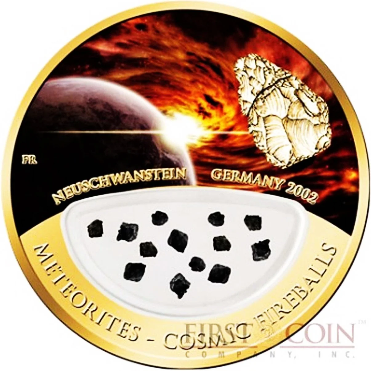 Fiji coat of arms above meteorite fragments; denomination and date below.