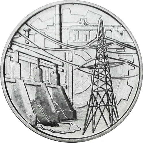 A stylized cluster of Transnistrian industry symbols extends from the center to the coin's obverse.