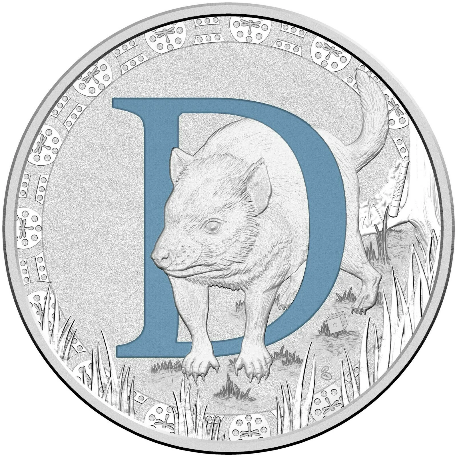 The Letter D Coin shows a lively Tasmanian Devil playfully engaging with the letter D.