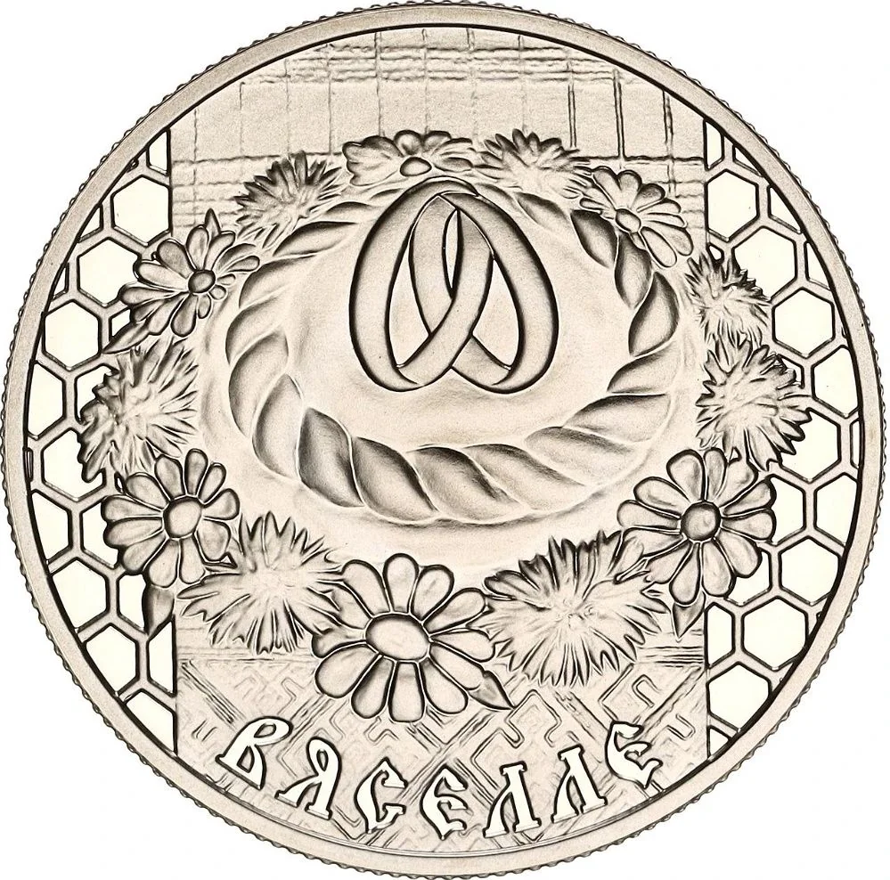 Description: Bottom: Relief of the State Coat of Arms. Center: Relief of two birds on a Tree of Life with a shamrock (symbol of happiness and family well-being). Below: Year and "1 РУБЕЛЬ". Top: "РЭСПУБЛІКА БЕЛАРУСЬ".