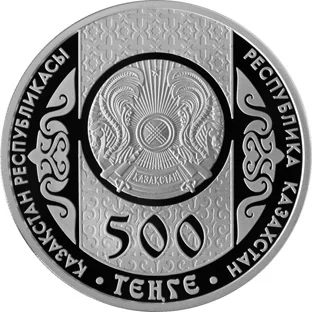 Kazakh emblem on rim, denomination centered below.