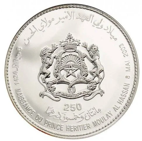 Birth of Crown Prince Moulay El Hassan, May 8. Kingdom of Morocco. 250 dhs.