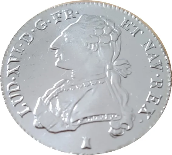 The reverse features a Louis aux Palmes, a Louis d'or minted under Louis XVI during the American Revolutionary War.
