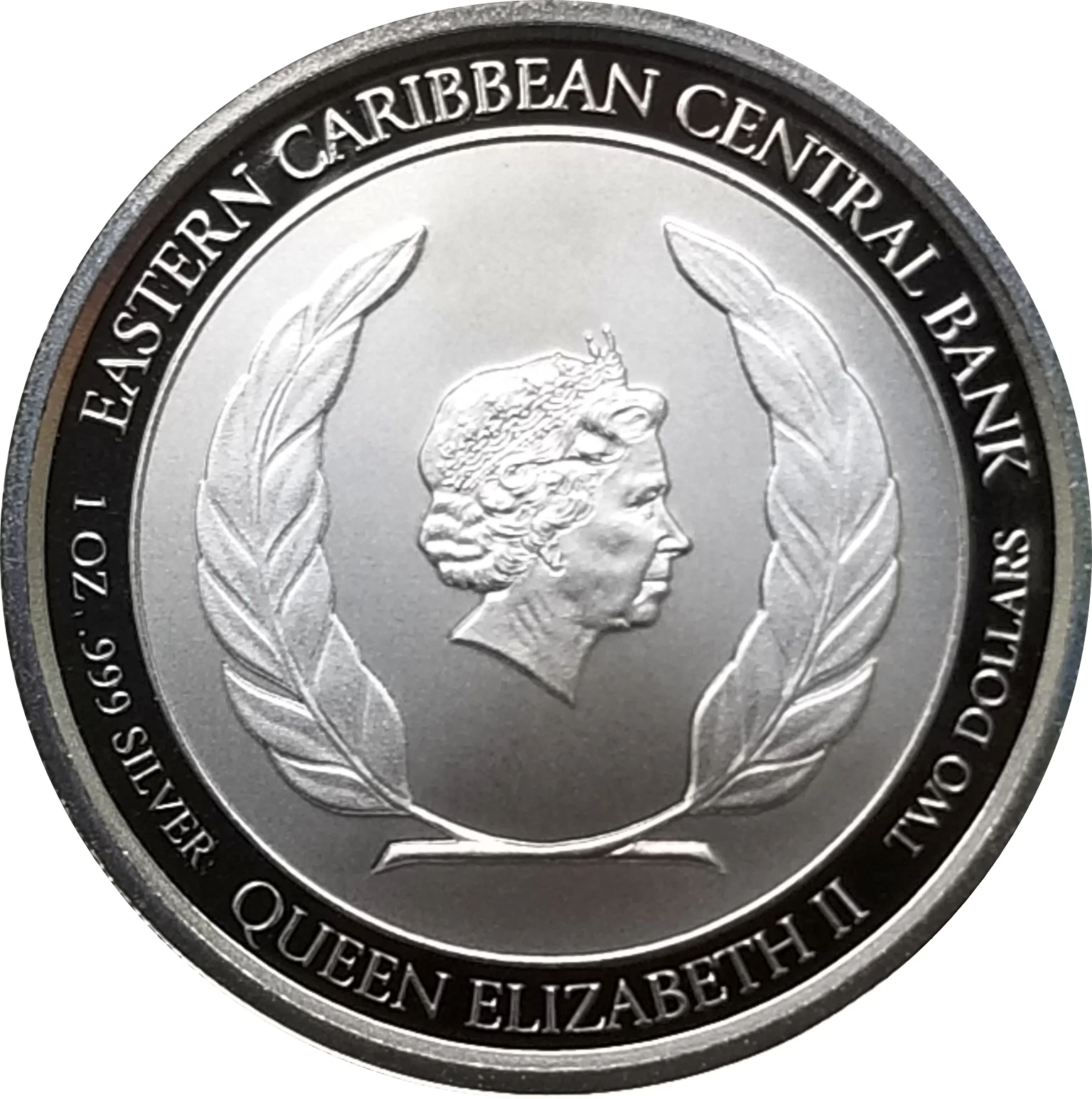 Queen Elizabeth II facing right, encircled by a wreath with surrounding lettering.