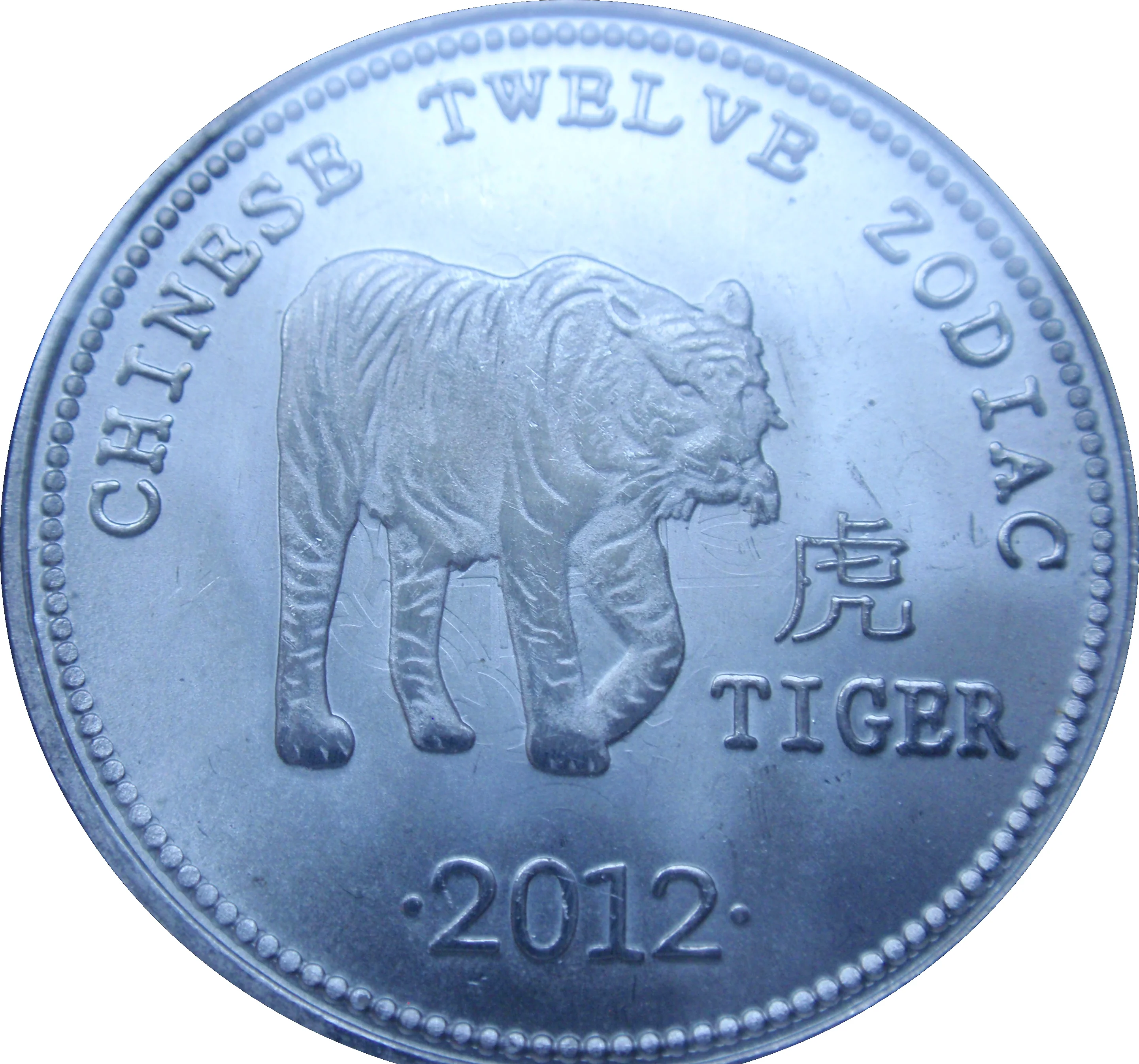 Tiger with Chinese character, date beneath.
