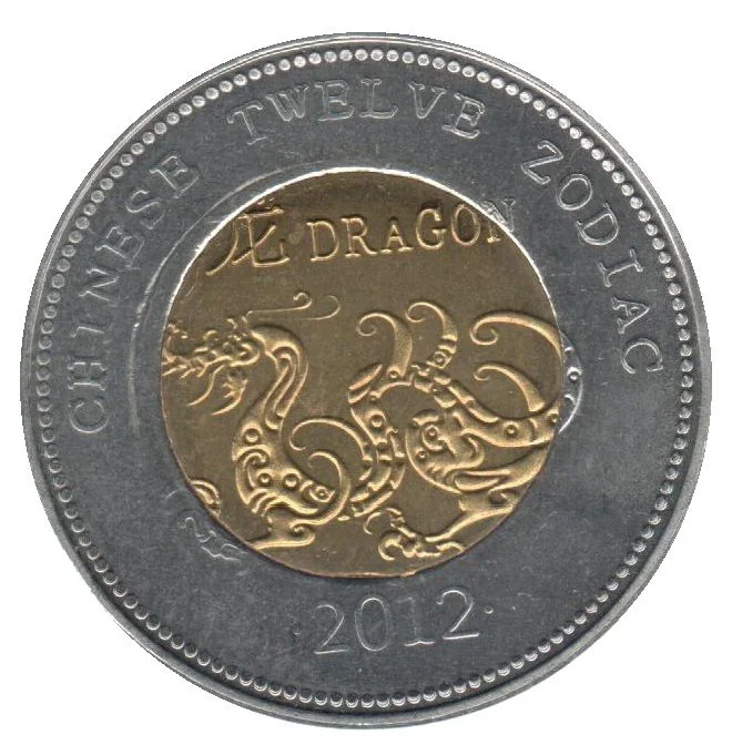 Composition: Bimetallic (Brass center, Copper-nickel ring)