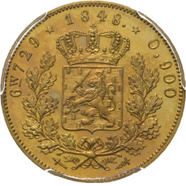 In 1848, the Netherlands operated under a bimetallic monetary system, formally established by the Coin Act of 1816. This law fixed the value of the silver guilder (also called the florin) and the gold ten-guilder coin at a specific ratio (1:15.873). However, this system was under significant strain due to global market fluctuations in the value of gold and silver. The discovery of new gold sources was beginning to destabilize the fixed ratio, making it increasingly difficult for the Dutch central bank, De Nederlandsche Bank (DNB), to maintain both coins in circulation, a problem common across Europe.