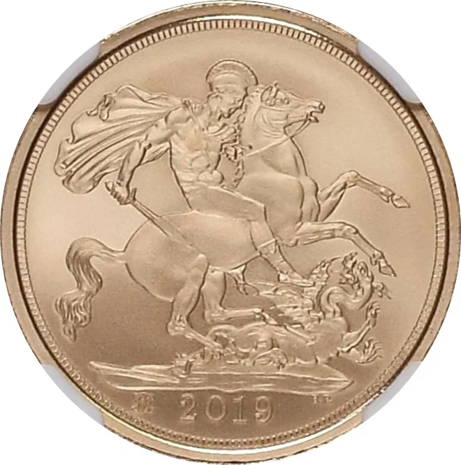 St. George slaying the dragon, date and designer's initials below, with Queen Victoria's royal cypher.