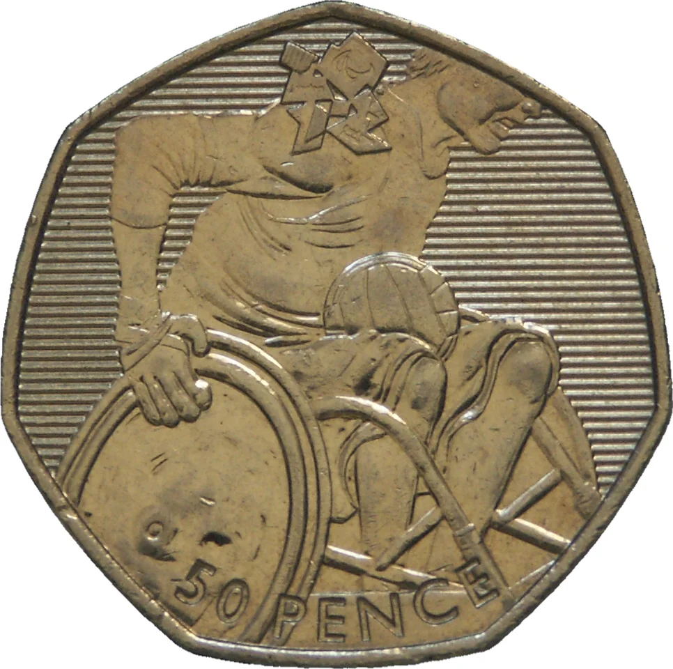 Wheelchair rugby player with ball, London 2012 logo above, denomination below.