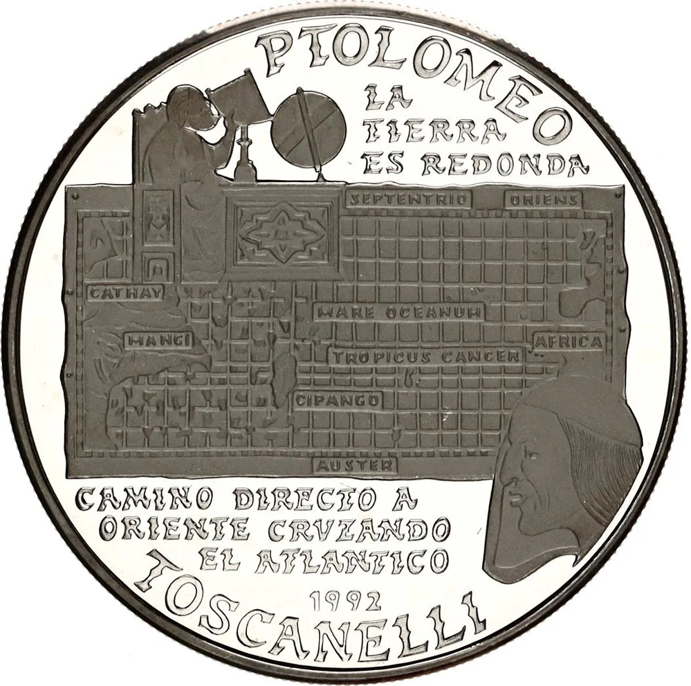 Ptolemy's map depicting Earth's shape, with various legends and date below.