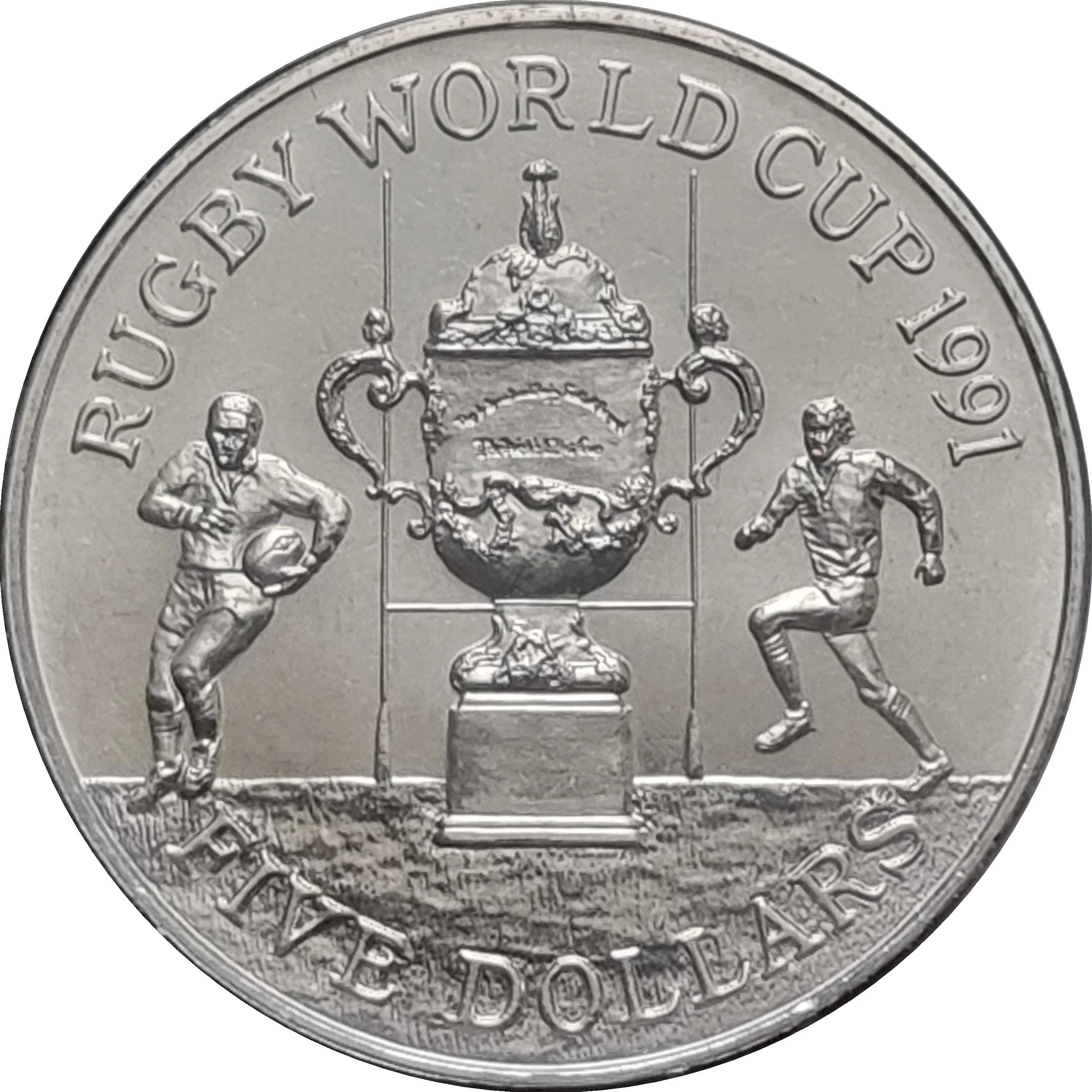 The Webb Ellis Cup with two rugby players, one in an All Blacks uniform.