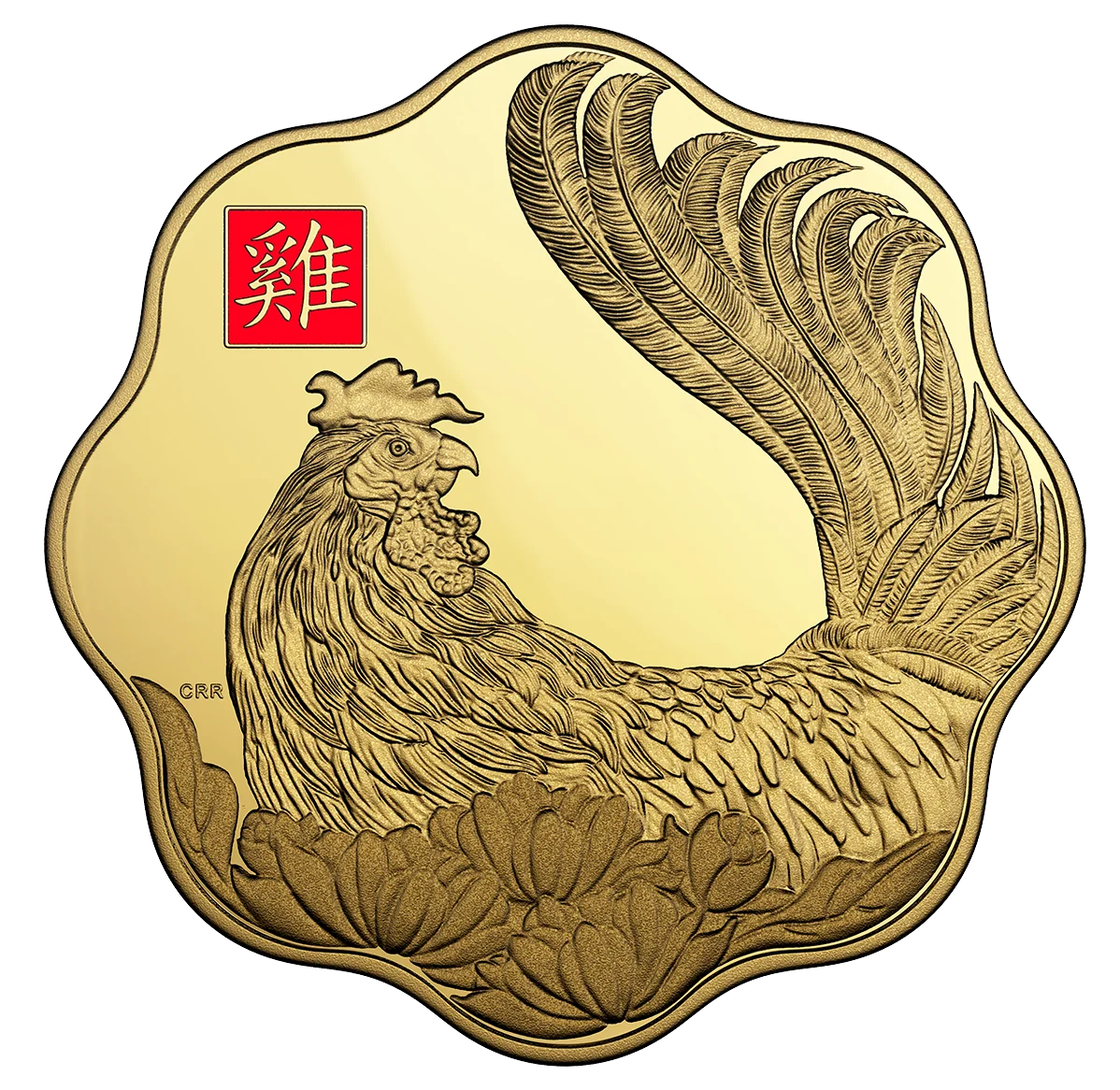 Rooster with flowers.